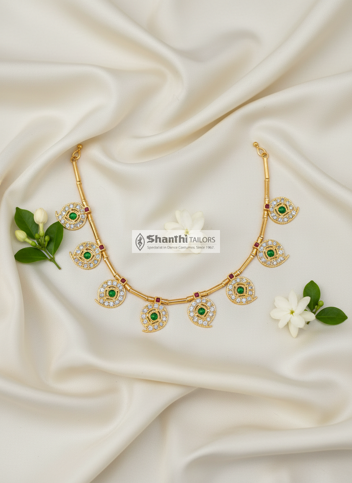 Rani Mango Necklace 8 pc | Original Temple Jewellery NecklaceHand Made JewelleryPure Silver with Gold LeafedUsed by Professional Dancers in the field of Bharatnatyam and Kuchipudi