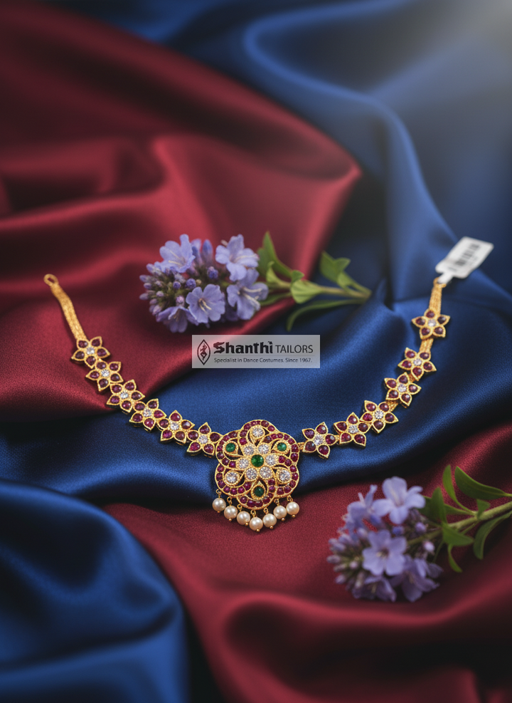 Rockodi Star Choker | Original Temple Jewellery Necklace Hand Made JewelleryPure Silver with Gold Leafed Used by Professional Dancers in the field of Bharatnatyam and Kuchipudi