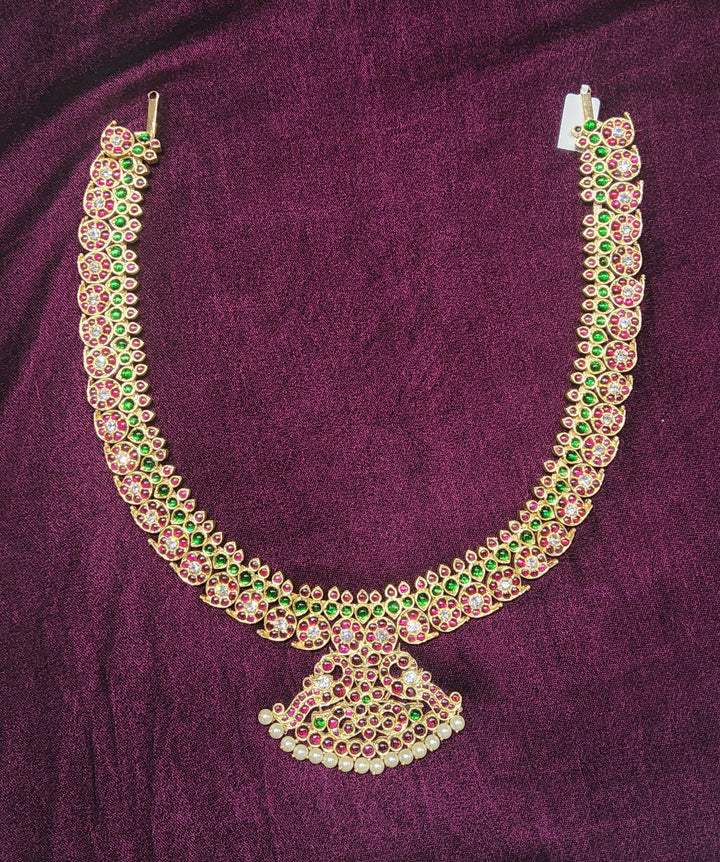 Handcrafted by skilled temple jewellery artisans, this haram is durable, comfortable, and stage-ready for dancers of all levels — from students to arangetram performers.