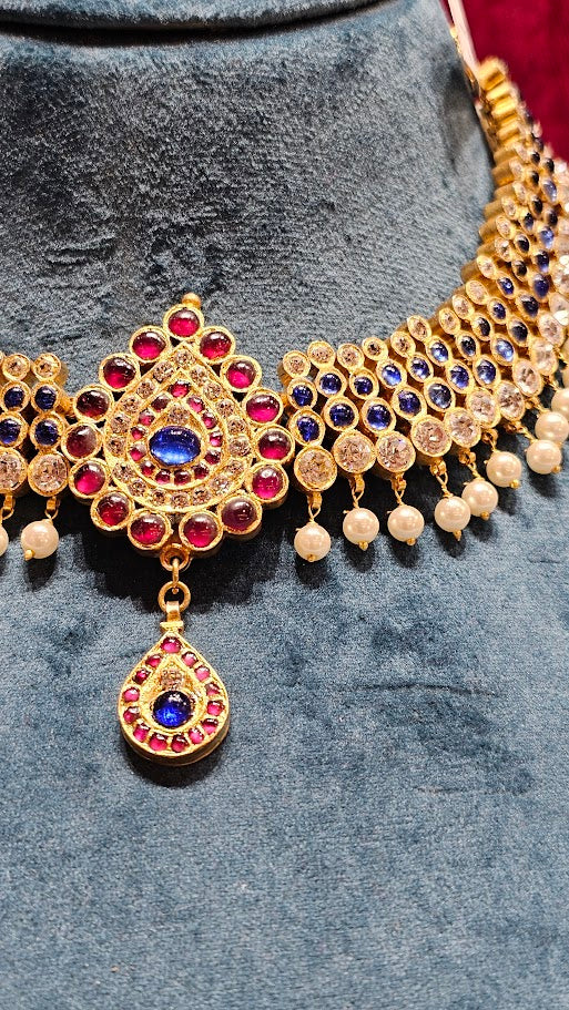 4 LINE DOT NECKLACE CENTER BLUE | ORIGINAL TEMPLE JEWELLERY
