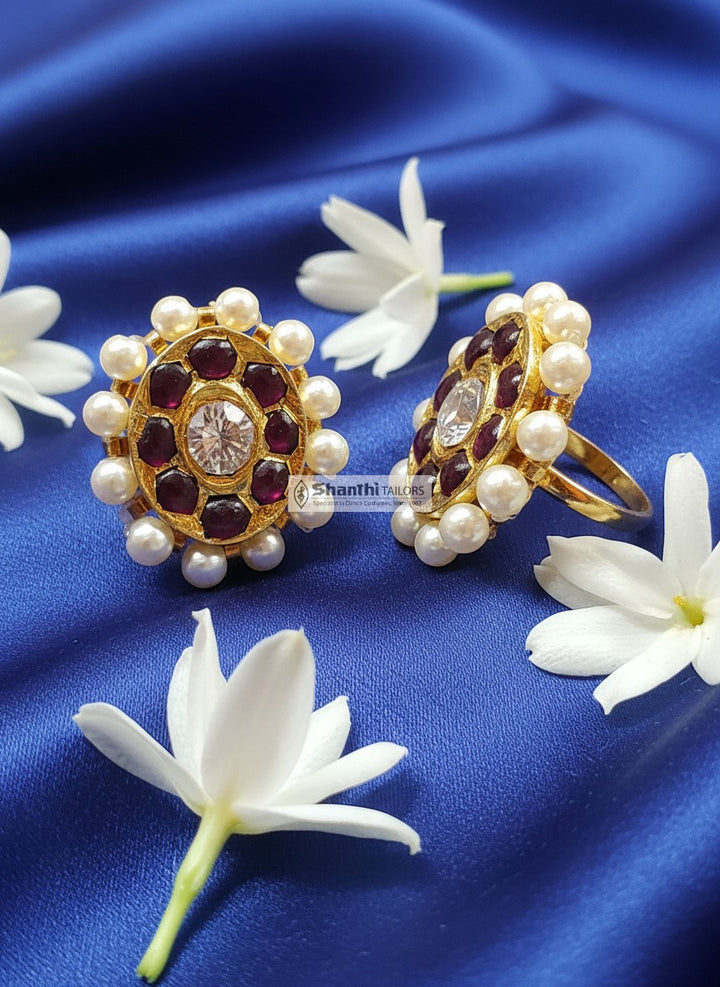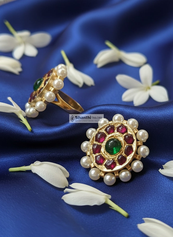 Temple Stone Green Pearl Ring, Pearl Stone Circle Ring, Ruby Emerald Ring, Emerald Circle Ring, Green Stone Floral Ring, Temple Stone Pearl Ring |