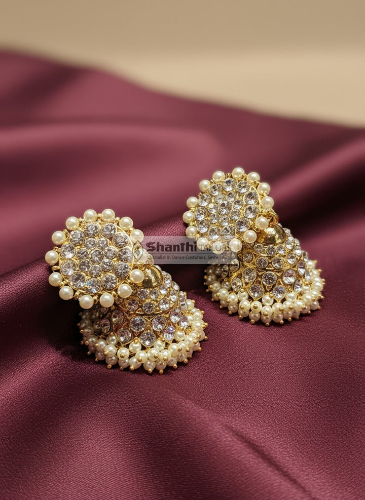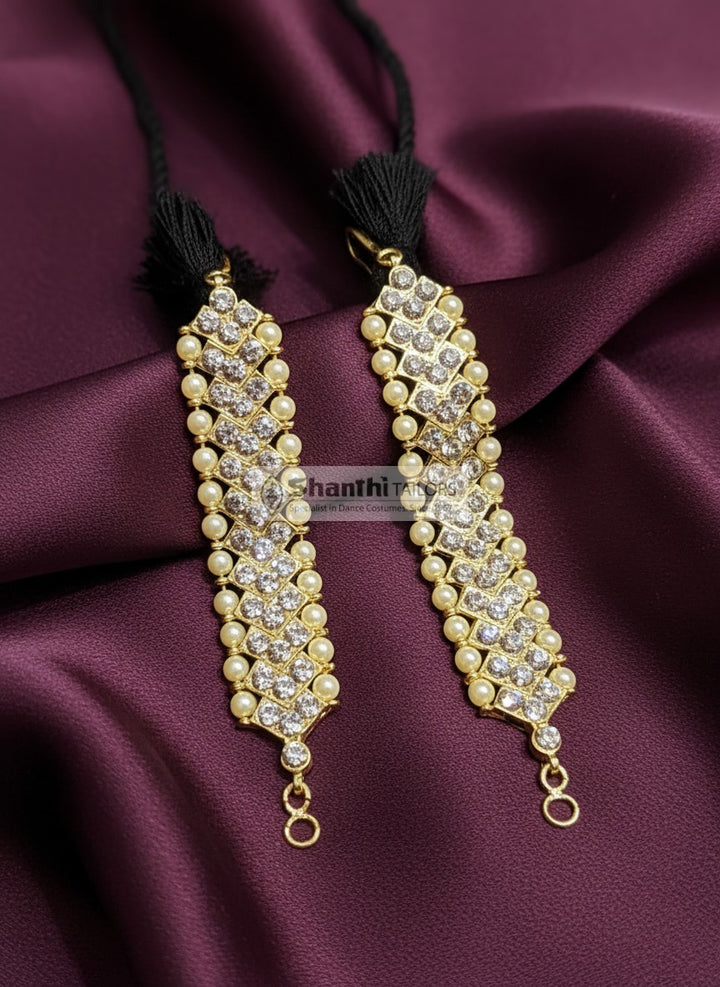 Crafted with high-quality copper and polished to perfection, the white stones add a soft, serene shine that complements any dance costume — especially traditional whites, creams, pastels, and Margam theme outfits. Lightweight, durable, and stage-friendly, this set enhances abhinaya, expressions, and overall stage presence.
