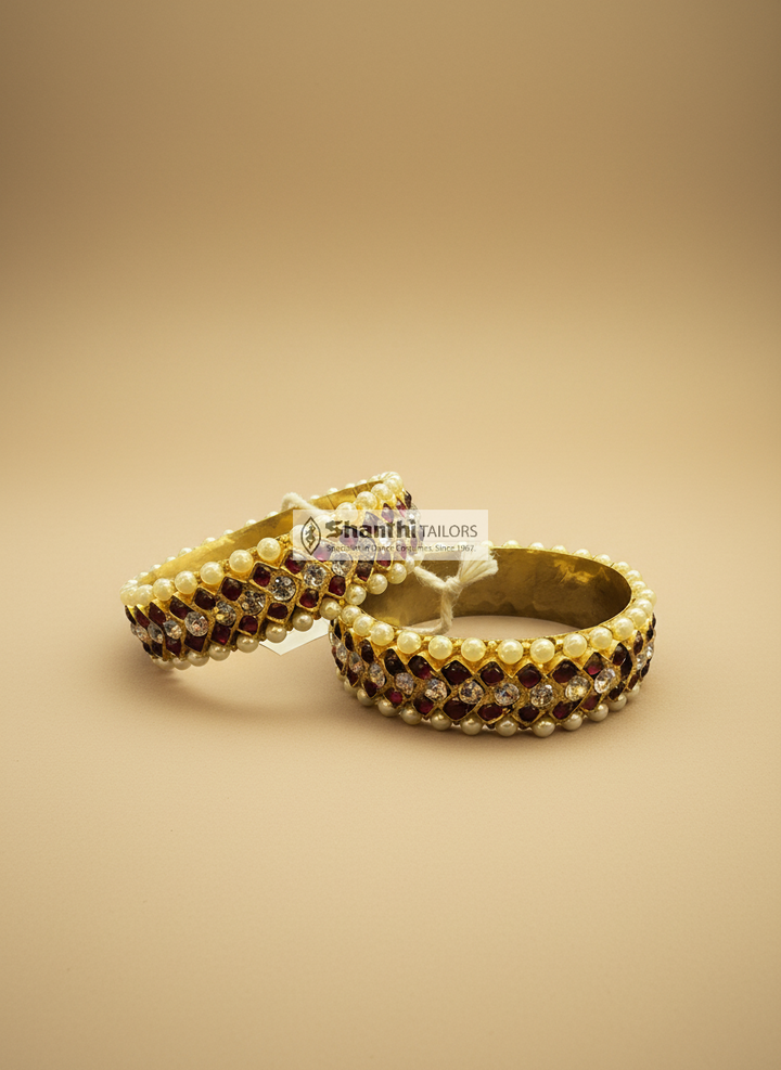 Pink with White Stone V Bangle | Temple Jewellery | Bangle Description The Pink with White Stone V Bangle is a stunning temple jewellery accessory designed to elevate any Bharatanatyam,...