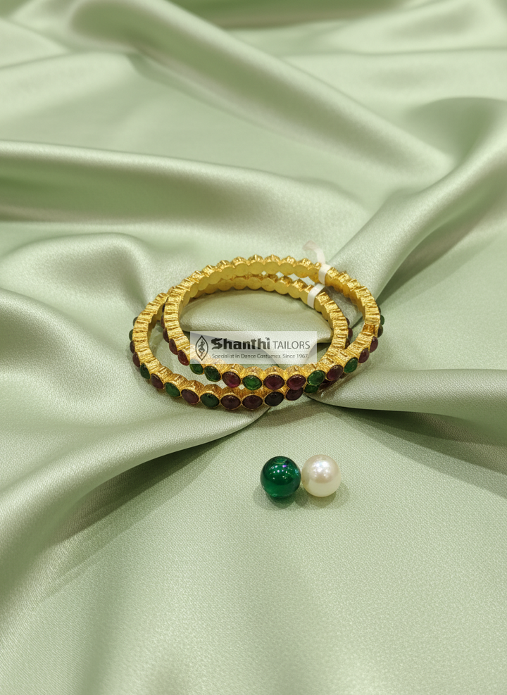 Featuring the signature surul (twisted spiral) pattern, this bangle adds depth, shine and classical authenticity to every wrist movement on stage.