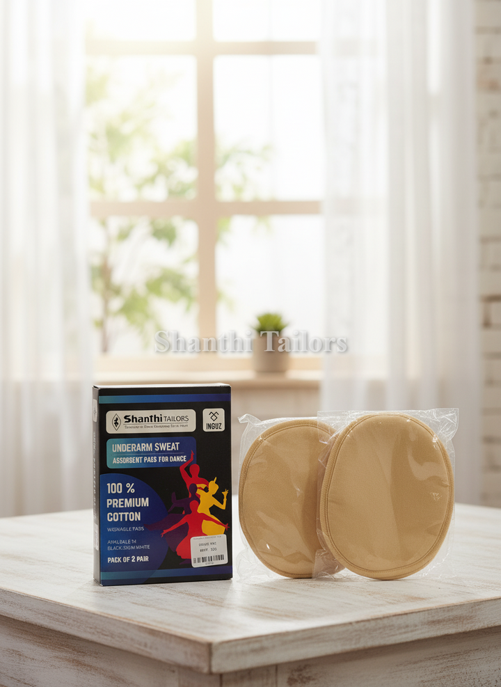 Underarm Sweat Absorbent Pads for Dance | Shanthi Tailors Introducing the Shanthi Tailors Underarm Sweat Absorbent Pads, specially designed for professional classical dancers, Bharatanatyam performers, Arangetram students and stage artists.Made...